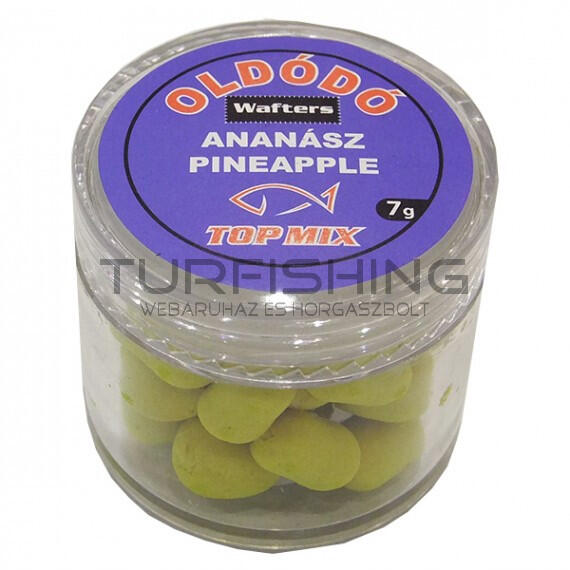 Top Mix Allsorts Tournament Wafters csalik sok éves versenytapasztalat alapján készült oldódó pelletek, melyek egy tégelyben tartalmazzák a horgászatok során leginkább használt színeket. Vegyesen található meg benne fehér, citromsárga, narancssárga és pink színű wafters. Minden benne található szem dumbell formájú, 8, 10 és 12mm méretű. Az édes ízű waftersek fehér c