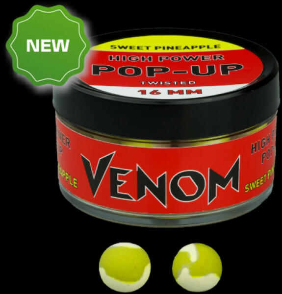 Feedermánia Venom High Power Pop-Up Boilie 16 mm Extra erős felhajtóerejű lebegő csalik. Ruganyos állagú, a hajszálelőkén akár több napig is bírja, nem reped, nem törik, rendkívül intenzív aromákkal.