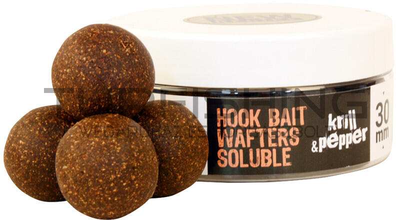 A The Big One Hook Bait Wafters Soluble csalizó bojli termékek a kikönnyített csalik minden előnyét felvonultatják. Lassan süllyedő változat, ami azt jelenti, hogy a fenéken kínáljuk fel, de szinte csak érinti az aljzatot, ezért a táplálkozó pontyok az elsők között szippantják fel. A bojli család összes tagjára jellemző, hogy szinte bármilyen körülmények között ered