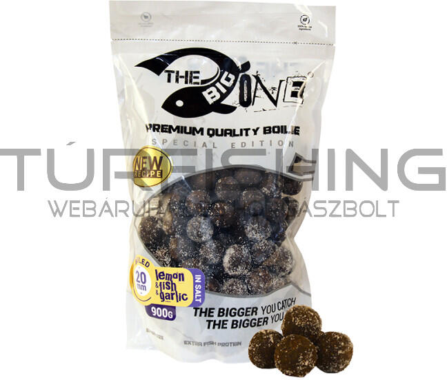 The One Big One Boilie in Salt - sózott bojli A The Big One főzött bojlik prémium minőségű mesterséges anyagoktól mentes összetétele a kapitális pontyok horgászatában hatalmas előnyt és ezáltal kimagasló eredményt biztosít. Az alapanyagok magas fehérje tartalmú, enzimkezelt szabad aminosav tartalommal rendelkező, vízben oldódó kivonatok. A folyékony összetevők is ezt a