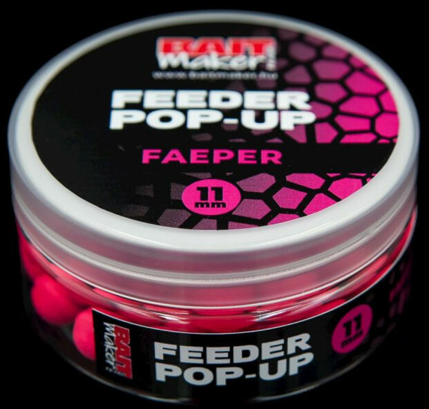 Kifejezetten a feeder és method horgászat szerelmeseinek hoztuk létre Feeder Pop Up csali termékcsaládunkat melyek 9 és 11 mm-es méretben elérhetőek, a Premium Oldódó Pop Up, valamint Wafters csalik ízeihez igazodva. Élénk színekkel és közepes felhajtóerővel rendelkező lebegő bojli. Remek kiegészítője lehet a pellet termékcsaládnak, vagy a tejsavas erjesztésű Feeder Cuc