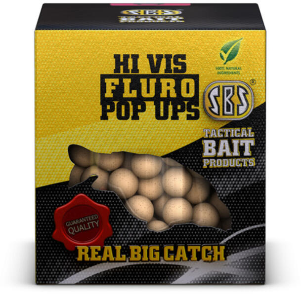 Az SBS Fluro Pop Ups egy rendkívül élénk színű lebegő csali! A ponty köztudottan kíváncsi természetű hal és nagyon sokszor nem képes legyőzni kíváncsiságát. Ha Fluro Pop Uppal csalizunk, akkor csalink élénk fluoreszkálásával ki fog tűnni a többi csali közül, felkeltve ezzel a pontyok érdeklődését. Erre a megfigyelésre alapozva használják nagyon sokan eredményese