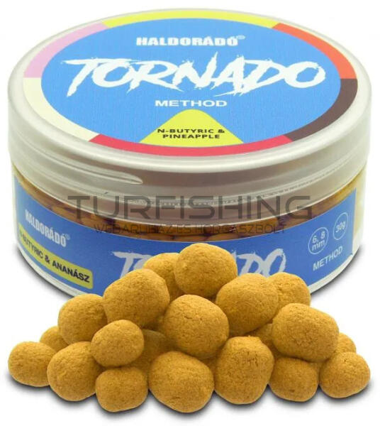 A TORNADO Method a nagysikerű TORNADO Wafter csalik method horgászathoz optimalizált változata, mely ugyanúgy árasztja magából a szín, és illatanyagokat, mint a nagynevű elődje. Egy tégelyben 6 és 8 mm-es wafter (mérsékelten lebegő) pelletek találhatók meg, a már ismert és bevált TORNADO ízekben. Csalitüskés felkínálása immár lehetővé teszi, hogy finomabb horgászato