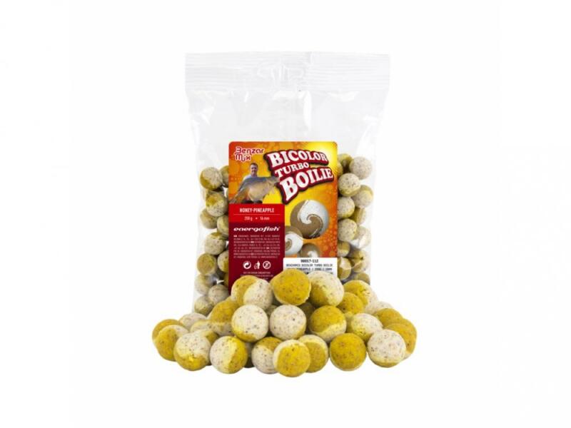 A Benzar Turbo Bicolor Bojli nagyon különleges ízkombinációkban került a boltok polcaira úgy, mint a rák-eper, méz-ananász, hal-szilva, halibut-fokhagyma és a krill-scopex. Ezek egytől-egyig olyan aromák, amelyek önmagukban is nagyon fogósak, keverve azonban ez fokozottan igaz!A már sokszor megfogott nagytestű pontyoknak nehéz újat mutatni, hiszen esetenként már 10-nél is tö