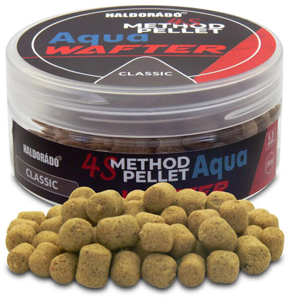 A 4S Method Pellet Aqua Wafter termékcsalád három tagból áll. Elérhető Uni, Classic, valamint az Uni+Classic változatokban. Nem nehéz kitalálni, hogy a név jelzi azt, melyik pelletfajta őrleményéből is áll a csali. A legérdekesebb az Uni + Classic, mely a két legnépszerűbb pellet 50-50%-os keveréke. Az Uni változat sötétbarna, inkább már fekete, a Classic változat világ