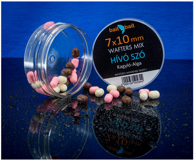 A The Big One Hook Bait Wafters főzött csalizó bojli termékek a kikönnyített csalik minden előnyét felvonultatják. Lassan süllyedő változat, ami azt jelenti, hogy a fenéken kínáljuk fel, de szinte csak érinti az aljzatot, ezért a táplálkozó pontyok az elsők között szippantják fel. A bojli család összes tagjára jellemző, hogy szinte bármilyen körülmények között ere