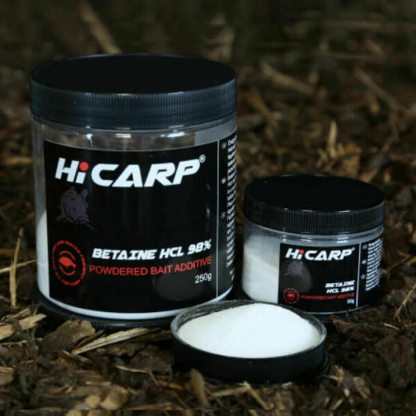 A Betain HCL 98% ( Trimetilglicinhidroklorid) va lószínűleg a legismertebb attraktor és táplálkozást serkentő anyag a pontyhorgászatban. Ez a ma elérhető legtisztább betain por, több mint 98%os tisztaságú finomított betaint tartalmaz. A fehér, kristályos, szagtalan, enyhén savanyú port kémiai úton a cukorrépából vonják ki. Vízoldékonysága 100%! A betaint már évek ót