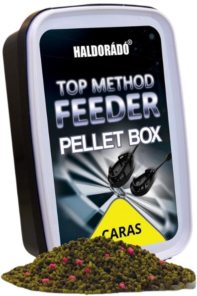 A Top Method Feeder Pellet Box Caras változata célzottan a kárász fogására lett megalkotva, köszönhetően a benne található válogatott, halspecifikus pelletkeveréknek. Az íze, aromája és jellege tökéletesen passzol a kárászok kedvenc etetőanyagához, így garantáltan vonzó lesz számukra. A Top Method Feeder Pellet Box Caras-t használhatod önmagában, de etetőanyagokkal ke