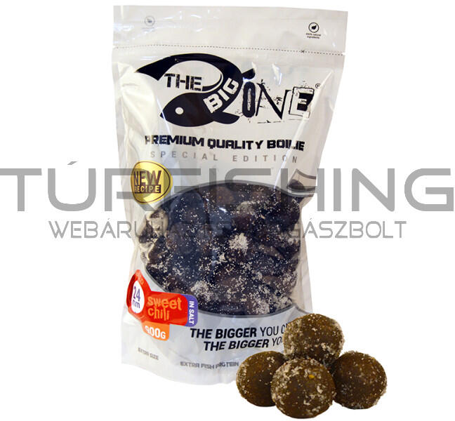 The One Big One Boilie in Salt - sózott bojli A The Big One főzött bojlik prémium minőségű mesterséges anyagoktól mentes összetétele a kapitális pontyok horgászatában hatalmas előnyt és ezáltal kimagasló eredményt biztosít. Az alapanyagok magas fehérje tartalmú, enzimkezelt szabad aminosav tartalommal rendelkező, vízben oldódó kivonatok. A folyékony összetevők is ezt a