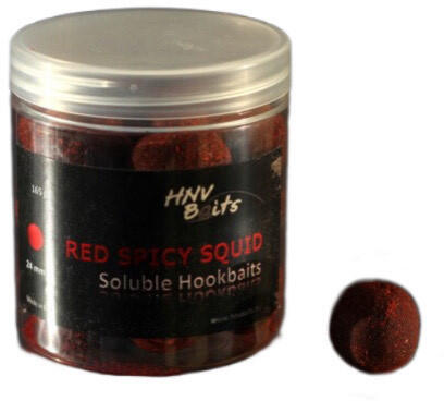 HNV Baits Red Spicy Squid Soluble Hookbaits Oldódó Horogcsali 24mm Tintahal lisztttel Minőségi májporral Egyedi fűszerkeverékkel Kiváló fehérje tartalom Jó aminósav profil Megfelelő zsírtartalom Természetes betaintartalom Kiváló emészthetőség Oldódó Pontyoknak fejlesztve Helyet követelt magának a palettán egy igazán attraktív termék, a Red Spicy Squid bojli. Erőssége