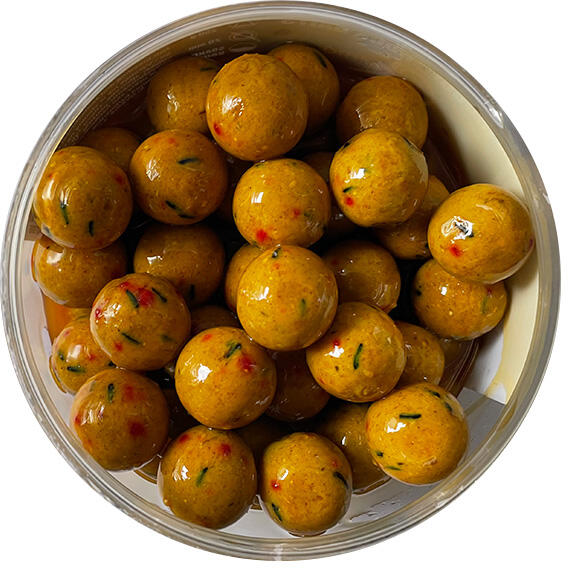 Dippelt horog bojlikEzeket a bojlikat kizárólag csalizásra fejlesztettük ki, dippelt formában. Igyekeztünk olyan aminosavakat, aromákat, étvágyfokozókat beletenni, amivel még jobb csalogatóhatást tudunk elérni. Akár etetésen, akár keresőhorgászatot folytatunk, ezeket a bojlikat biztosan nem hagyják figyelmen kívül a halak!Megvásárolható 20-as és 16-os méretben.