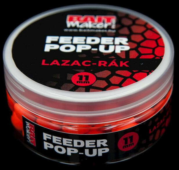 Kifejezetten a feeder és method horgászat szerelmeseinek hoztuk létre Feeder Pop Up csali termékcsaládunkat melyek 9 és 11 mm-es méretben elérhetőek, a Premium Oldódó Pop Up, valamint Wafters csalik ízeihez igazodva. Élénk színekkel és közepes felhajtóerővel rendelkező lebegő bojli. Remek kiegészítője lehet a pellet termékcsaládnak, vagy a tejsavas erjesztésű Feeder Cuc