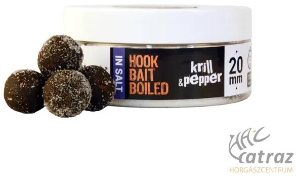 The Big One Hookbait in Salt 20mm Krill & Pepper - The One Sózott Csalizó Bojli A The Big One főzött csalizó bojlik prémium minőségű, mesterséges anyagoktól mentes összetétele a kapitális pontyok horgászatában hatalmas előnyt és ezáltal kimagasló eredményt biztosít. Az alapanyagok magas fehérje tartalmú, enzimkezelt szabad aminosav tartalommal rendelkező, vízben oldó