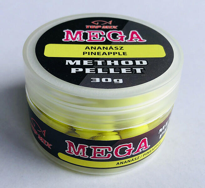 Elsősorban method feederes horgászathoz kifejlesztett lebegő pellet. A pellet a kisebb méretű Method Pellet nagyobb változata. Sokan, a Method Pellet használói közül jelezték, hogy jó lenne egy nagyobb változat is, hogy a halakat szelektálni lehessen. Ennek az igénynek a figyelembe vételével készült el a MEGA Method Pellet. A pellet hatásosságát fokozza a színe, íze és a r