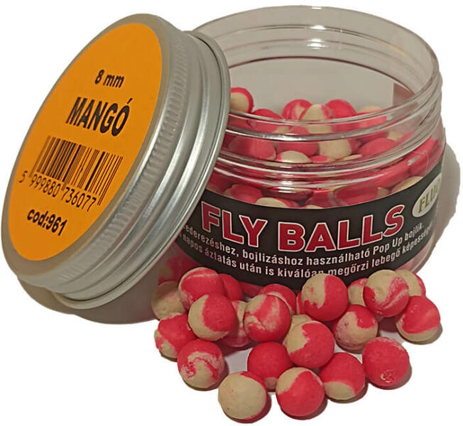 8mm Fly BallsA pontyhorgászatban elengedhetetlen néha a nagyobb felhajtóerővel rendelkező csalik használata, amik esetenként még a horgot is megemelik. Mi megalkottuk a 8-10 mm-es flyballsokat, ami felhajtóerejében merőben eltér a waftersektől. Formájuk kerek, színük szinte kivétel nélkül világos/feltűnő, hiszen a pop up-ok legfontosabb tulajdonságai közé kell tartozzon a