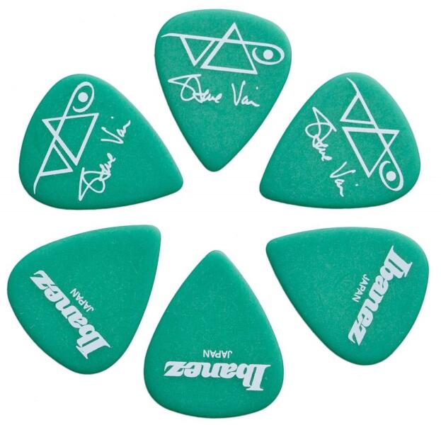 Steve Vai signature szériás pengetők. A csomag 6 db pengetőt tartalmaz. Keménység: Heavy Vastagság: 1 mm Zöld kivitel