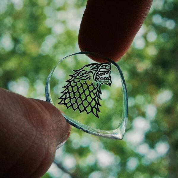 Osiris GOT Stark -1 db M-es méretű pengető, 2.9 mm vastagság -Anyag: Átlátszó akril -Forma: MJ (Modded Jazz III) -Méret: M-es -Gravírozás: fekete -Vastagság (mm): 2.9