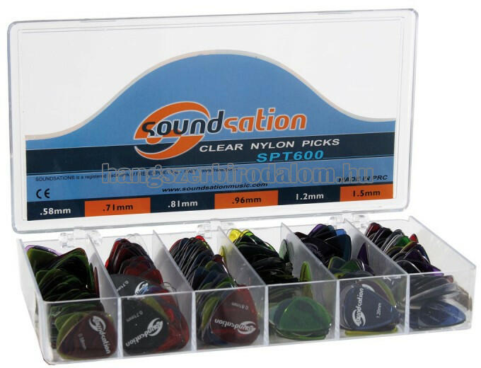 CSAK ELŐRE UTALÁSSAL / BANKKÁRTYÁS FIZETÉSSEL!! 10 darabos pengető szett - 10 db pengetőből álló szett, 1 db Alice fém pengető és 9 db különböző keménységű és színű Soundsation műanyag pengető (0,46 és 1,5 között)