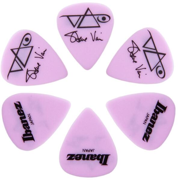 A plektron vastagsága: 1 mm, Anyag: Poliacetál, Darabszám: 6, Szín: Rózsaszín, Gyártás helye: Japán, Motívum: Steve Vai,