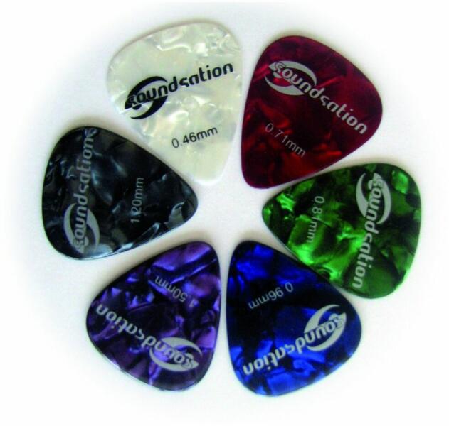 A Soundsation bemutatja az SPC600 celluloid pengető-sorozatát, amely 6 különböző vastagságú/színű változatban jelenik meg. 72 db-os csomag Anyaga: celluloid Vastagság: 0.81