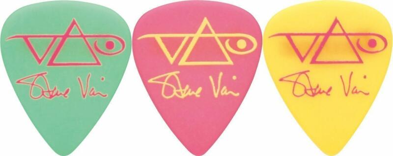 Gitár pengető készlet, 3 db, Steve Vai Signature széria. A pengetők poliacetál anyagból készülnek, amely erõs és maximális kényelmet biztosít. A készlet könnycsepp alakú. Keménység: Heavy. Szín: Green/Pink/Yellow.