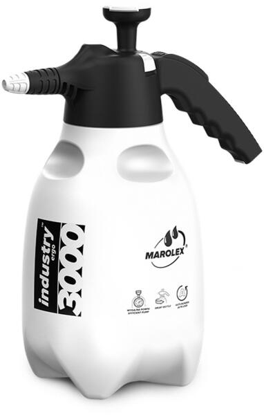 A Marolex Pumpás flakon - 3000ml savas egy nyomástartályos kézi permetező, amely a savas kémhatású szerekre lett kifejlesztve, mint a felnitisztítók, vízkőoldók vagy egyéb ipari vegyszerek. Teljes űrtartalom: 3,55 l Űrtartalom: 3 l Nyomás: 0,4 MPa Súly: 0,61 kg A Marolex Pumpás flakon - 3000ml savas egy nyomástartályos kézi permetező, amely a savas kémhatású szerekre lett