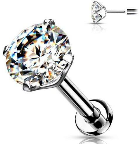 Szárvastagság: 1,2 mm. Hossz: 8 mm. Szín: EzüstGolyó mérete: 3 mm. A kő színe: ÁtlátszóAz ékszert egy karmos foglalatban ülő kő disziti. Hipoallergén, G23-as titánból készült, tehát akár első piercing is lehet belőle. Mivel a titán nem tartalmaz nikkelt, olyanok hordhatják, akik allergiások, vagy érzékeny bőrűek. Praktikus push-in mechanizmussal működik, ami azt je