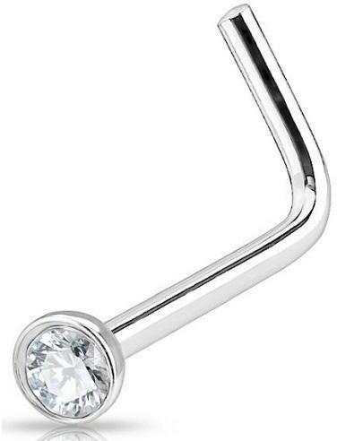 Szárvastagság: 0,8 mm. Hossz: 6 mm. Szín: EzüstA kő színe: ÁtlátszóDísz mérete: 3 mm. Az ékszer "L" alakú, így biztonságosan illeszkedik az orrba, nem fog kiesni. Orvosi acélból készült.
