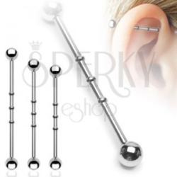 Industrial - acél fülpiercing, mely a fül felső részének a két szélét szúrja át. Gömb található a szárvégeken. Ezüst színben kapható. Vastagság: 1,6 mmHosszúság: 32 mmA golyócska átmérője: 5 mm