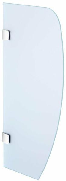 A 6 mm-es biztonsági üvegből készült tömör válaszfal, amelyet krómtartók tartják a helyükön, nagyon elegánsan néz ki, ahol garantálni kell a környezet meghittségét. Anyaga: 6 mm-es homokfúvott biztonsági üveg