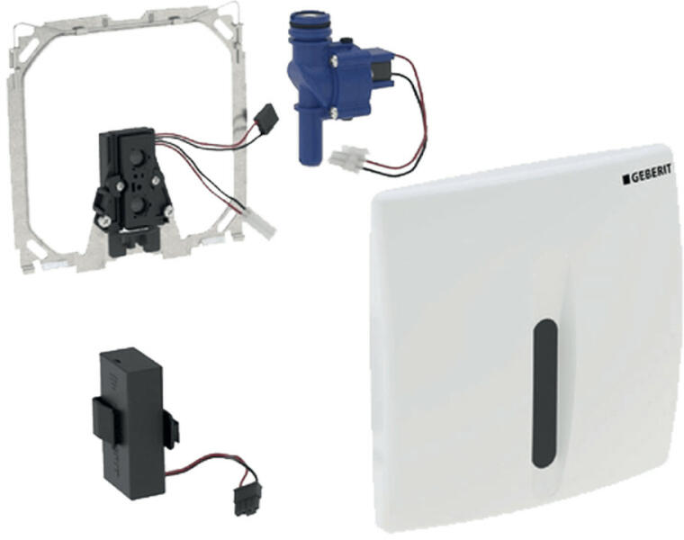 Geberit piszoár infra vezérlés a Basic szériából műanyag fehér előlappal, Geberit Duofix szerelőelemekbe történő beépítéshez. 2013-tól gyártott modellekhez. Önkalibráló infravörös érzékelő, beállítható öblítési idő és közbenső öblítés. GEBERIT BASIC piszoár infra vezérlés fehér műanyag takarólappal, 230V Geberit Duofix szerelőelemekbe történő beép