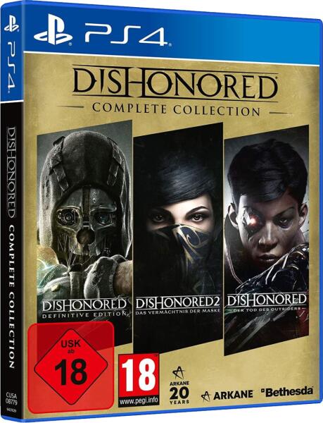 A Dishonored The Complete Collection a következőket tartalmazza: - Dishonored: Definitive Edition. - Becstelenül: A kívülálló halála. - Becstelen 2. Dishonored: Definitive Edition - Ez a teljes gyűjtemény tartalmazza a Dishonored és az összes elérhető DLC-t - Dunwall City Trials, The Knife of Dunwall, The Brigmore Witches és Void Walker's Arsenal. A Dunwall késében vállald Daud,