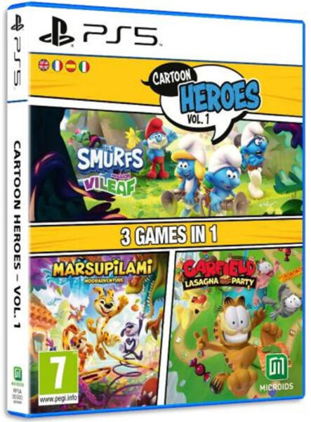 Cartoon Heroes Vol. 1: 3 Games in 1 (Smurfs Mission Vileaf & Marsupilami & Garfield Lasagna Party) tartalmazza: - Smurfs Mission Vileaf alapjáték - Marsupilami Hoobadventure alapjáték - Garfield Lasagna Party alapjáték Törpök küldetése Vileaf: Egy poros grimoireban a varázsló, Gargamel éppen most kapta a kezét egy gonosz növény, a Vileaf receptjére. Ez a növény "VILETRAP