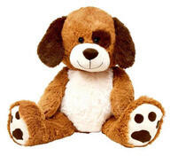 Többszínű kölyökkutya sötétbarna hajlékony fülekkel Megfelel az EN71 európai játékbiztonsági előírásoknak Mielőtt a gyermekeknek adná, távolítsa el az összes függőleges címkét és azok rögzítőelemeit Méret: kb. 31 cm > 6 éves kortól