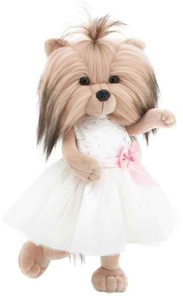 Lucky Doggy Yoyo plüss kutya elegáns ruhában Lucky Doggy Yoyo plüss kutya elegáns ruhában készül meghódítani a fiú kutyusok szívét, hogy a megfelelő társsal mancs a mancsban mehessen az idei kutyabálra. Yoyo csodás fehér ruháját még egyedibbé teszi a rajta lévő rózsaszín masni. Yoyo egy különleges kutyus, ugyanis öltöztethető , haja fésülhető és egyedi díszdoboz