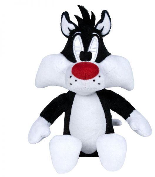 Looney Tunes plüss játék - Sylvester, 16 cmSylvester, a macska a Looney Tunes-ból, a híres szmokingos macska. Sylvester fehér állkapcsokkal, hosszú, a hasán végighúzódó bajusszal, fehér lábakkal és fehér farokvéggel rendelkezik. Puha plüssből készült játék. Hímzett részletek. A játék 100%-ban újrahasznosított műanyagból készült. Magasság: 16 cm. Ajánlott életko