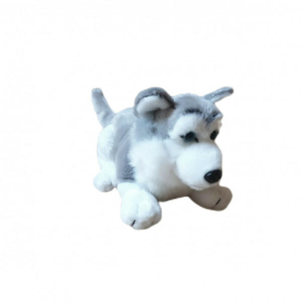 Plüss mini husky szürke-fehér fekvő A plüss mini husky a gyermekek kedvence lesz. A husky kutyusok élethűek , szép varrásúak, pihe-puha szőrüket egész nap simogatni lehet. Az állatos plüssökkel való játék fejleszti a gyerekek szociális készségét. A kutyusok 4 féle változatban elérhetőek: fekete-fehér ülő, fekete-fehér fekvő, szürke-fehér ülő, szürke-fehér fekv