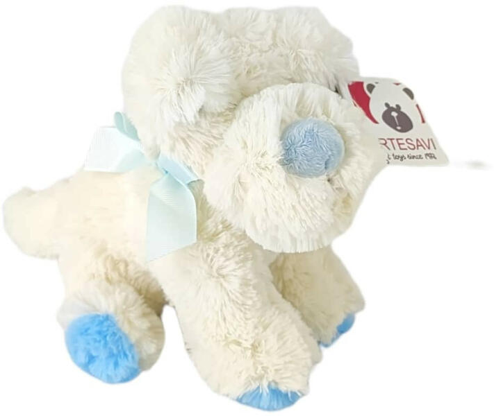 Plüss kutya kék szalaggal 20 cm - Artesavi Ha babád szereti a plüssöket vagy még csak most ismerkedik velük, ezt a fehér színű kutyust neki ajánljuk! Nyakában kék színű szalagot visel, az orra és a tappancsa is kék színű. Az Artesavi plüssökkel már újszülött kortól kezdve játszhatnak a gyermekek, ugyanis babaplüss anyagának köszönhetően nem szöszöl, így nem okoz