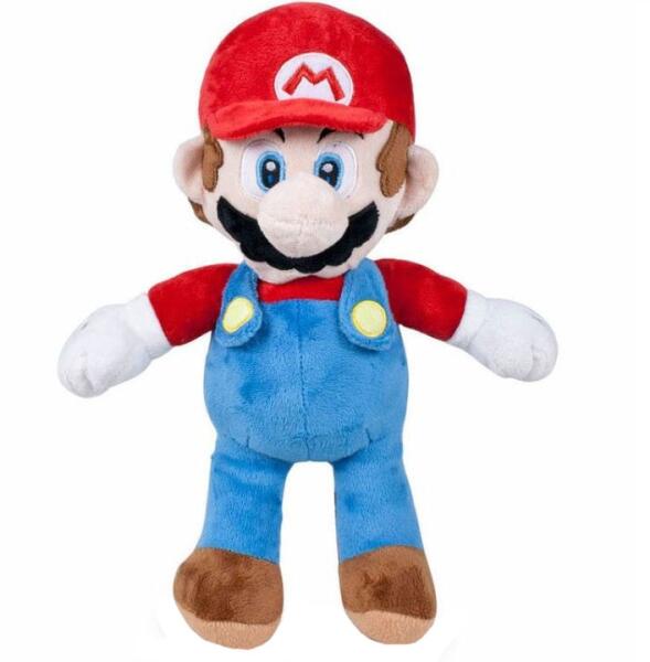 Super Mario Plüssfigura, Mario, 36 cm Mario egy alacsony és zömök, fekete bajuszú olasz vízvezeték-szerelő, aki a Gombabirodalomban él. Piros pólót, kék overált és piros sapkát visel. A hiperaktív kis vízvezeték-szerelő a videojátékok történetének egyik leghíresebb szereplőjévé vált, Egy aranyos plüssjáték formájában Mario készen áll a kalandokra új játszótá