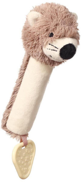 - puha, plüss anyagból - a játék nyomás hatására sípoló hangot ad - a sípoló végén fogínymasszírozó rágóka van