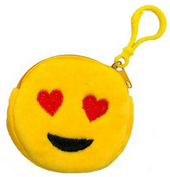 Emoji mintás plüss pénztárca Minta: Szívecskés, szerelmes emoji Tulajdonságai: Akasztós, cipzáras Mérete: Emoji plüss pénztárca szívecskés Egy aranyos Szívecskés smiley mintás pénztárca, kis táska . Borítása plüssből készült és cipzárral van ellátva. Akasztójának köszönhetően könnyen felrakható táskára, kulcsra vagy akár tolltartóra is. Mérete:
