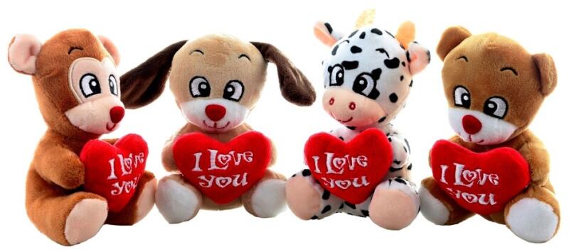 Plüss vadállat szívvel, mérete kb. 14 x 13 x 11 cm.