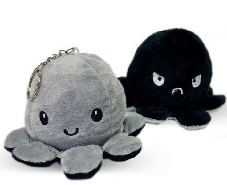 Kétoldalas hangulat polip mosolygósszürke és szomorúfekete színű arccal. Ennek a két oldalnak köszönhetően könnyen kifejezheti éppen milyen kedvében van. . Több szín kombinációból is választhat. . ! Csak fordítsa ki a puha plüss polipot és hangulatától függően mutassa a vidám vagy a szomorú arcát! Nagyszerű ajándék, segítségével könnyedén megoszthatja érzése