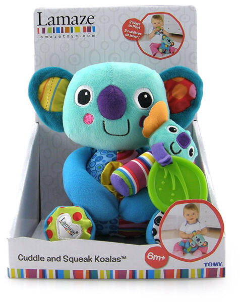 Lamaze plüss figura Koala LC27162 - Lamaze Koala plüssfigura kicsinyével. - A puha plüssfigura élénk színei és zörgő hangja fejleszti a gyermek látását, hallását és tapintását egyaránt. Kicsinyét az ölébe lehet ültetni és ha megnyomjuk, sípoló hangot ad. A figurán egy rágóka is található. - Méret: kb 20. cm - korosztály: 6 hónapos kortól ajánljuk