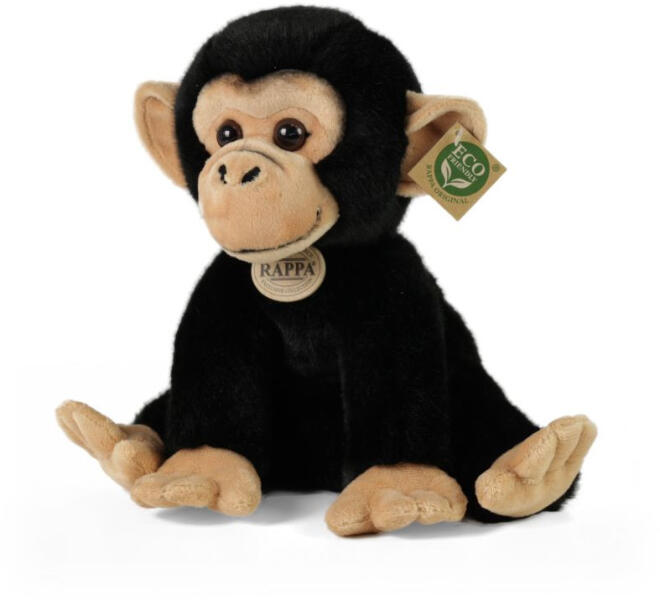 Plüss csimpánz ülő 28 cm - környezetbarát Plüss csimpánz ülő 28 cm - környezetbarát . A plüss csimpánz tökéletes kiegészítője lehet minden gyermekszobának. Puha tapintású anyagból készült, nagy kerek szemekkel, így igazi kedvenc lesz a kicsik számára. A plüssfigura fenekében és első mancsaiban babzsák töltet van, így ülni is tud. A plüss majom nem csak aranyos,
