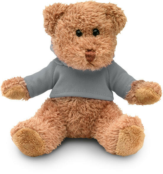 Pólót viselő plüss maci Kapucnis pólót viselő plüss maci. A szublimációs nyomtatás csak a fehér színű terméken érhető el.