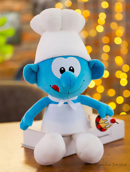 Hupikék törpikék Hami törp plüss 25 cm-es méretben. Hami törp a Hupikék törpikék című rajzfilmsorozat egyik szereplője. Ő a falu főszakácsa, aki imád süteményeket, tortákat és más édességeket készíteni és enni. Hami törp nagyon kedves és jószívű, de néha túlzásba viszi a nassolást, és ezzel bajba kerül.