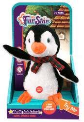 Visszabeszélő pingvin Interaktív játék kicsiknek. Tud kedves nyugtató dallamokat is játszani, de képes visszamondani az elhangzottakat. A plüss mérete kb 23 cm. A játék 3 db AAA elemmel működik.