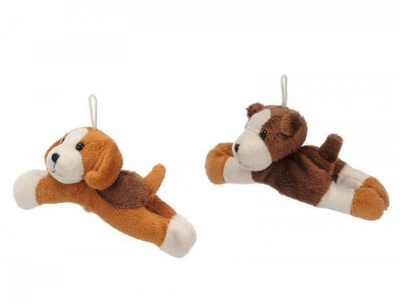 12 cm hosszú, fekvő plüss kutya. A kutya lábaiban mágnesek találhatóak így rögzíthető ujjra vagy mágneses felületre.