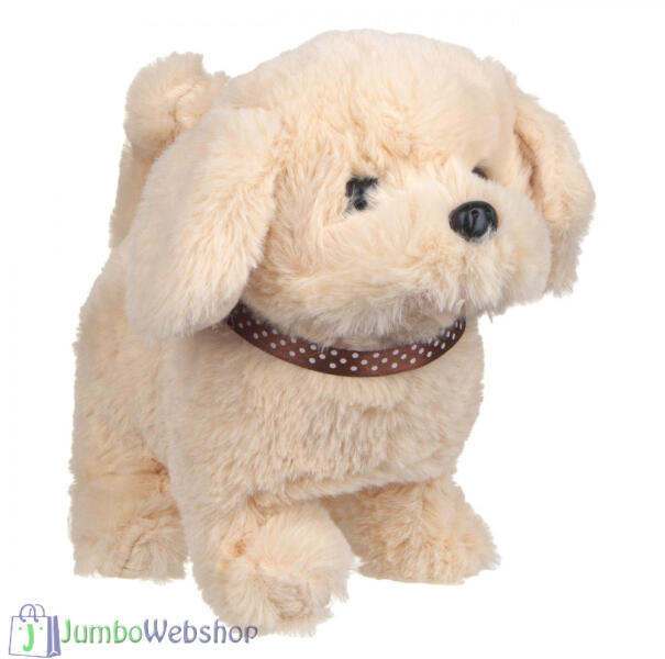Interaktív bézs színű plüss kutyus amelyik sétál, ugat és mozgatja a farkát. Csomag mérete: 11x16x18 cm * 2 db AA elemmel működik, mely nem tartozéka a csomagnak ** Nem alkalmas 3 év alatti gyermekek számára
